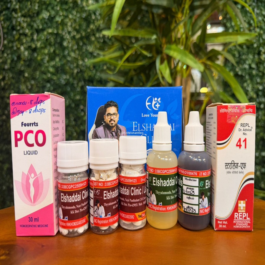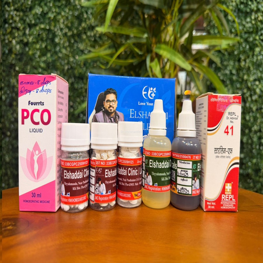 This homeopathic PCOD (Polycystic Ovarian Disease) medicine kit is a customized combination treatment commonly prescribed by homeopathy clinics to support women facing hormonal imbalance and menstrual irregularities.