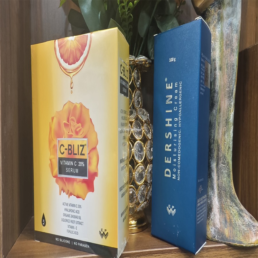 The C-Bliz Vitamin C 20% Serum is a potent antioxidant skincare product designed to brighten and rejuvenate the skin. Enriched with 20% pure vitamin C 20%, this serum effectively reduces the appearance of dark spots, fine lines, and wrinkles while promoting collagen production for a firmer, more youthful complexion. Its lightweight, fast-absorbing formula ensures deep penetration, leaving your skin glowing and revitalized.