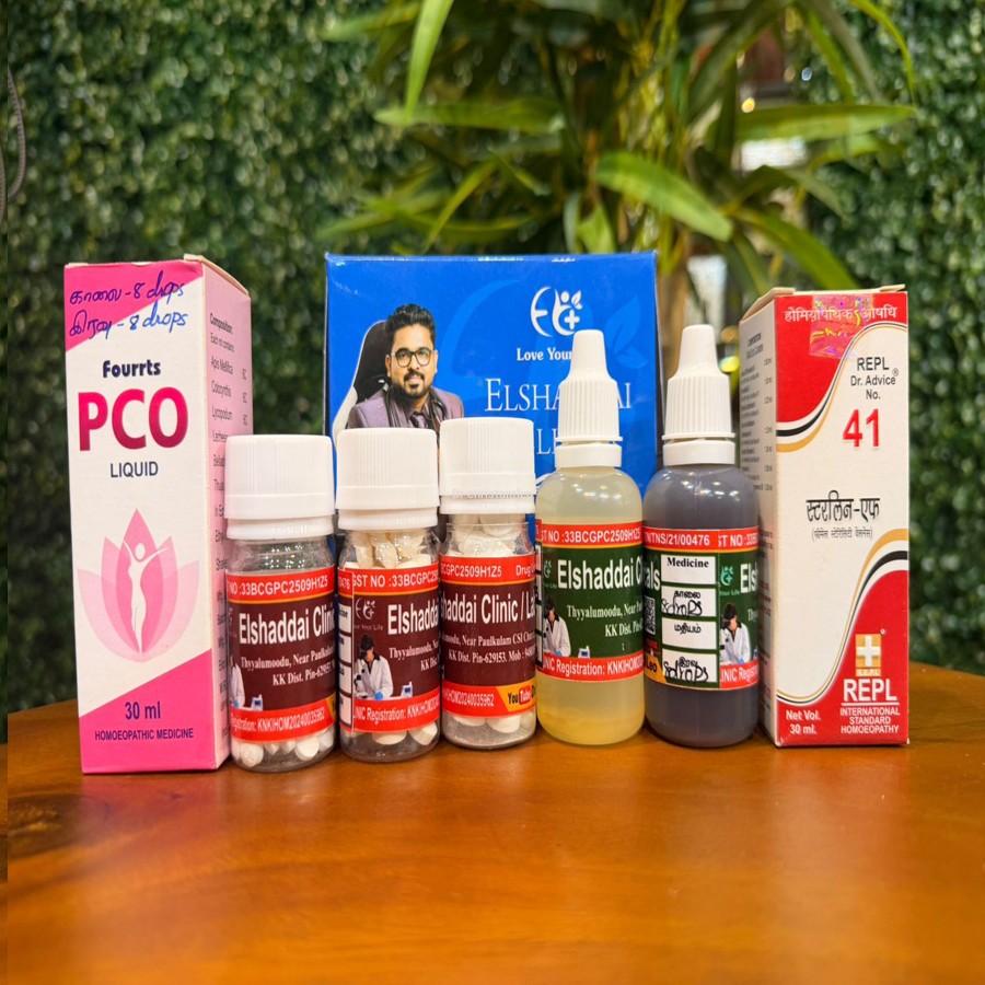 This homeopathic PCOD (Polycystic Ovarian Disease) medicine kit is a customized combination treatment commonly prescribed by homeopathy clinics to support women facing hormonal imbalance and menstrual irregularities.