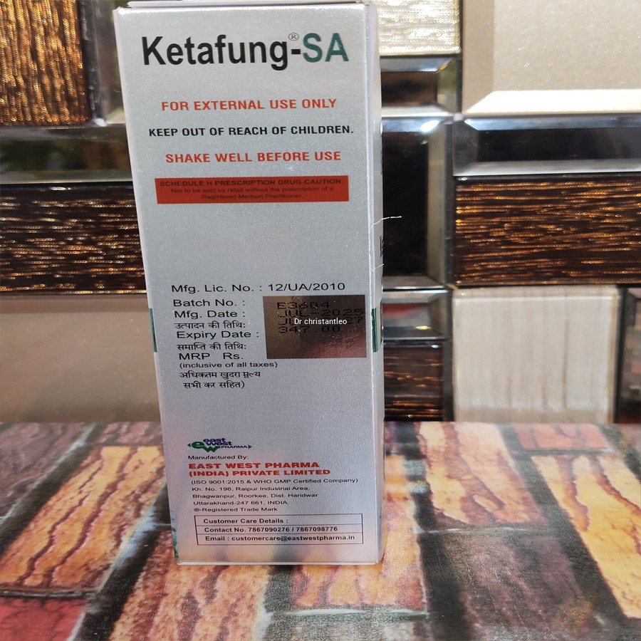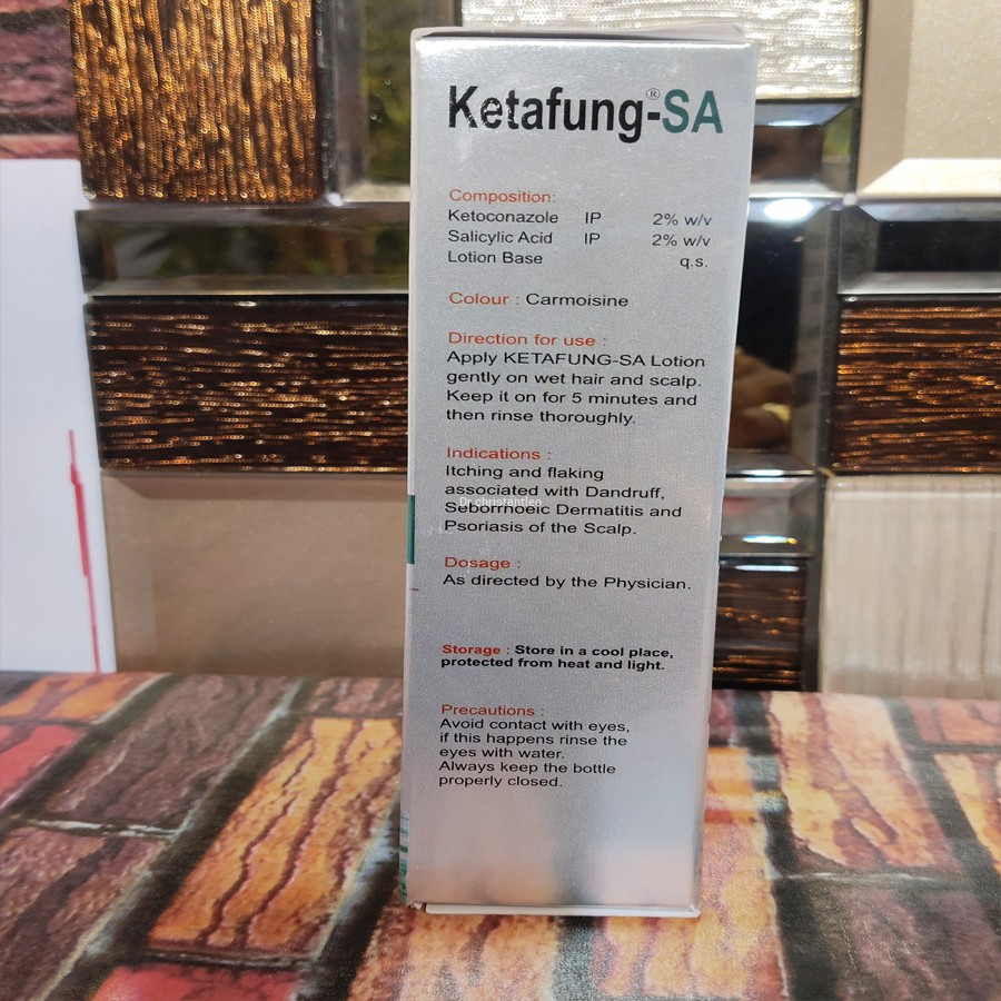 Ketafung-SA Medicated Shampoo 100 ml belongs to a class of medicine known as an antifungal. Ketafung-SA Medicated Shampoo 100 ml is primarily used to treat dandruff and control seborrheic dermatitis (scaly patches and red skin on the scalp). Dandruff is a flaky, itchy scalp without signs of inflammation.